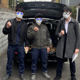 慌てて、スタッフの車に積めるよう切断w。積込完了で出発前恒例の写真撮影。