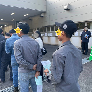 この日は熊本の検定(溶接)会場で、佐賀県鹿島市の組合員企業さまで頑張るインドネシア人技能実習生T君とR君の随時三級の実技検定です。